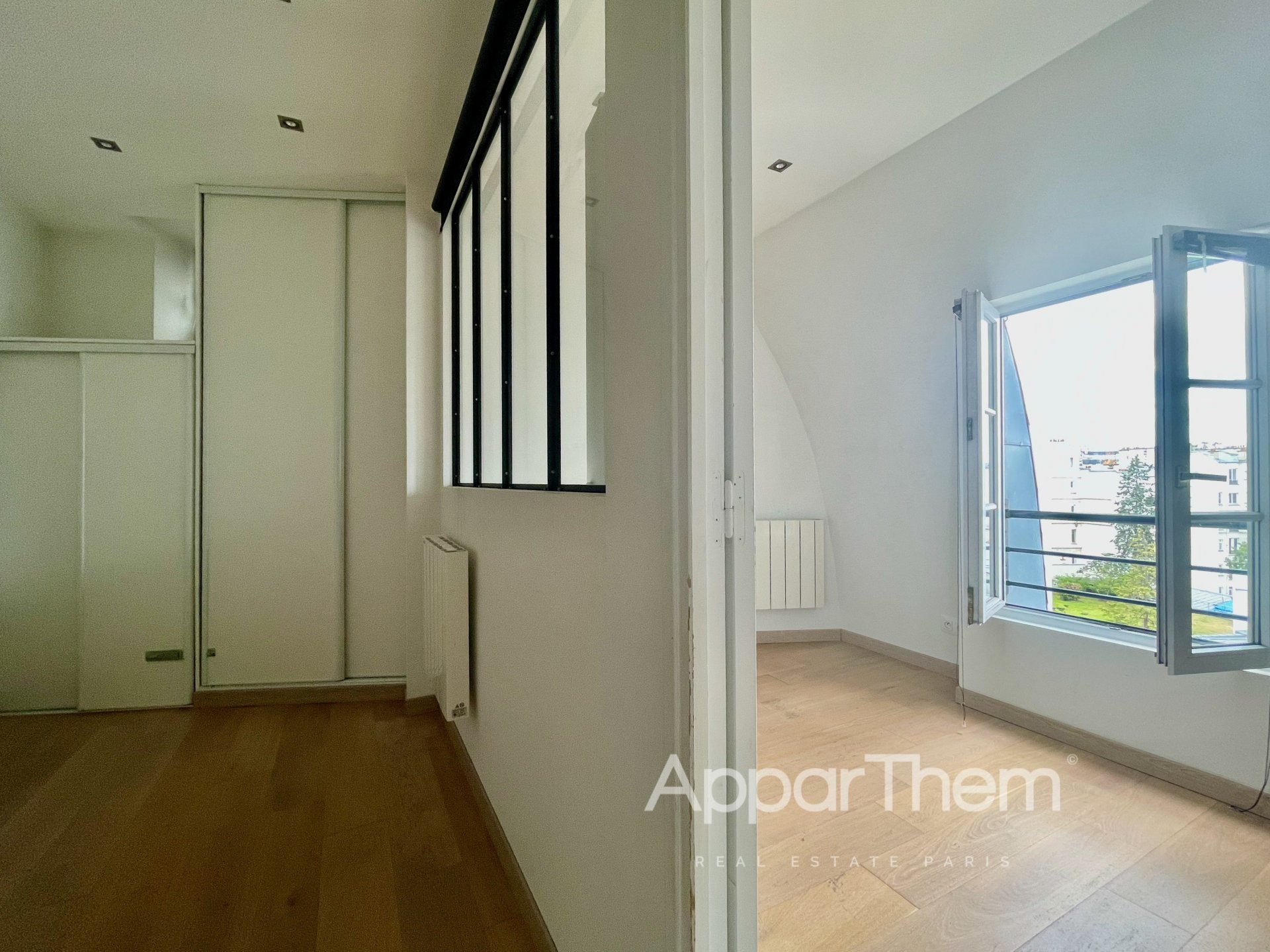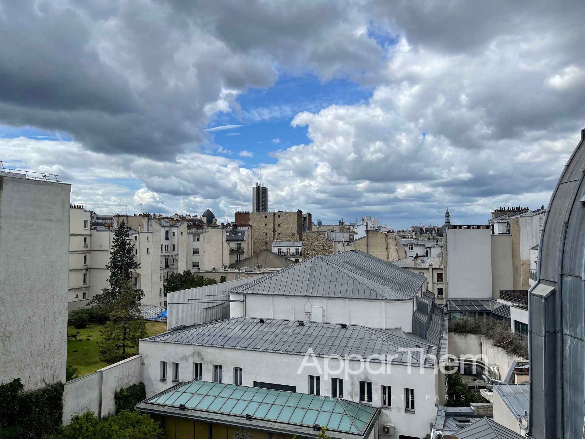 La vue est extrêmement dégagée et offre un panorama exceptionnel sur les toits de Paris.
